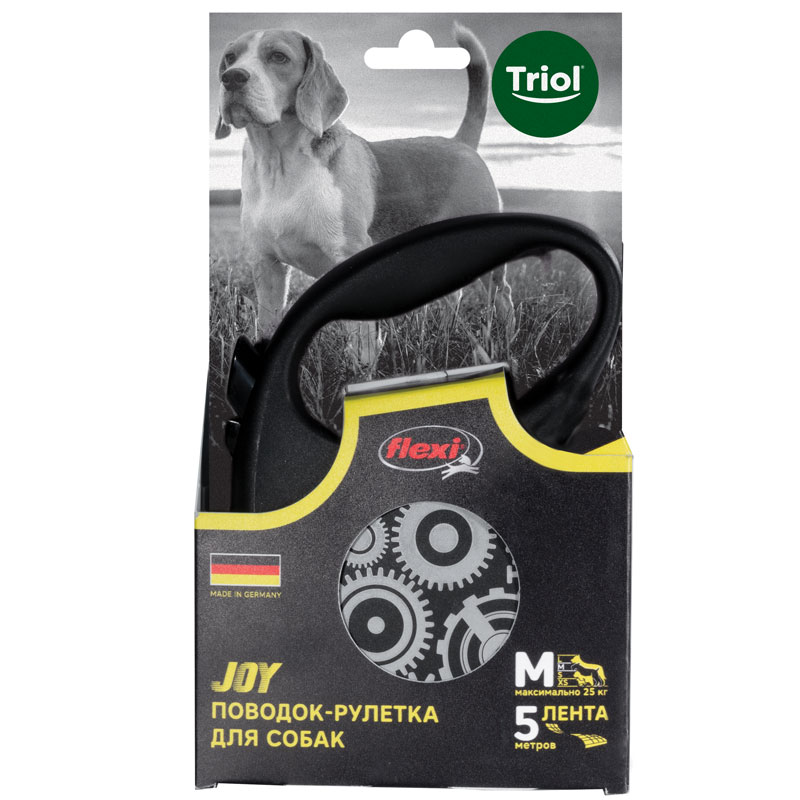 Рулетки для собак flexi – это безусловное качество, подкрепленное многолетним опытом, которое теперь доступно и поклонникам бренда TRIOL. Идеальное исполнение, прочный и, в то же время, приятный на ощупь пластик, запатентованный тормозной механизм и легендарная надежность стали более доступны благодаря сотрудничеству российской компании и немецкого производителя. Рулетки новой коллекции производятся в Германии, собираются вручную и проходят десятки проверок качества перед выпуском с завода.Гарантия производителя составляет два года и предоставляется только на функционирование механизма размотки и не распространяется на повреждения, возникшие в результате укусов собаки или прочего ненадлежащего использования рулетки. В рулетках серии Joy предусмотрена возможность крепления специального мультибокса - компактный контейнер для гигиенических пакетов удобно фиксируется прямо под ручкой! Мультибокс приобретается отдельно. Длина ленты: 5м. Максимальная нагрузка: 50кг. Цвет рулетки: черный, цвет рисунка: желтый.