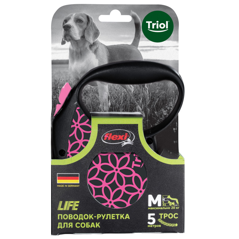 Рулетки для собак flexi – это безусловное качество, подкрепленное многолетним опытом, которое теперь доступно и поклонникам бренда TRIOL. Идеальное исполнение, прочный и, в то же время, приятный на ощупь пластик, запатентованный тормозной механизм и легендарная надежность стали более доступны благодаря сотрудничеству российской компании и немецкого производителя. Рулетки новой коллекции производятся в Германии, собираются вручную и проходят десятки проверок качества перед выпуском с завода. Гарантия производителя составляет два года и предоставляется только на функционирование механизма размотки и не распространяется на повреждения, возникшие в результате укусов собаки или прочего ненадлежащего использования рулетки. Длина троса: 5м. Максимальная нагрузка: 20кг. Цвет рулетки: черный, цвет рисунка: розовый. Рулетки упакованы в шоу-боксы flexi по 6 штук.