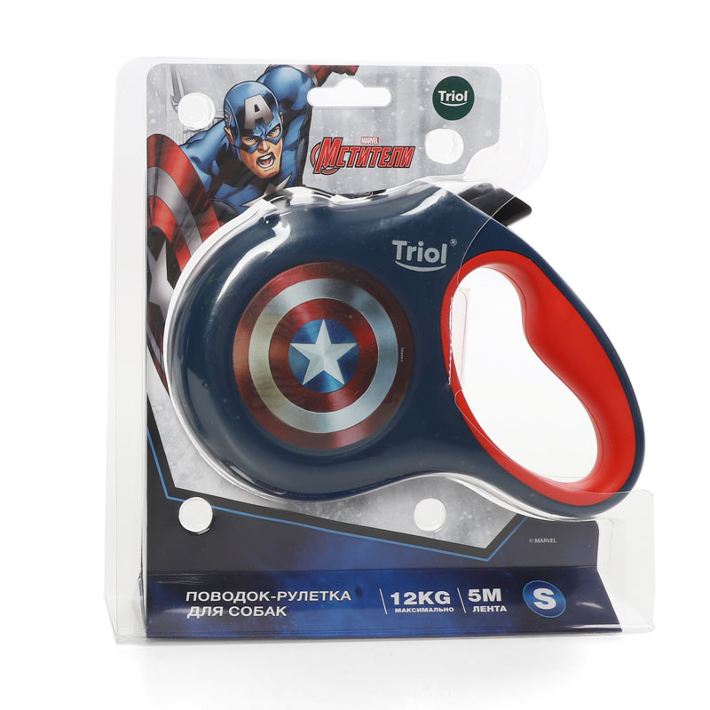 Поводок-рулетка для собак Marvel Капитан Америка S, 5м до 12кг, лента, Triol-Disney