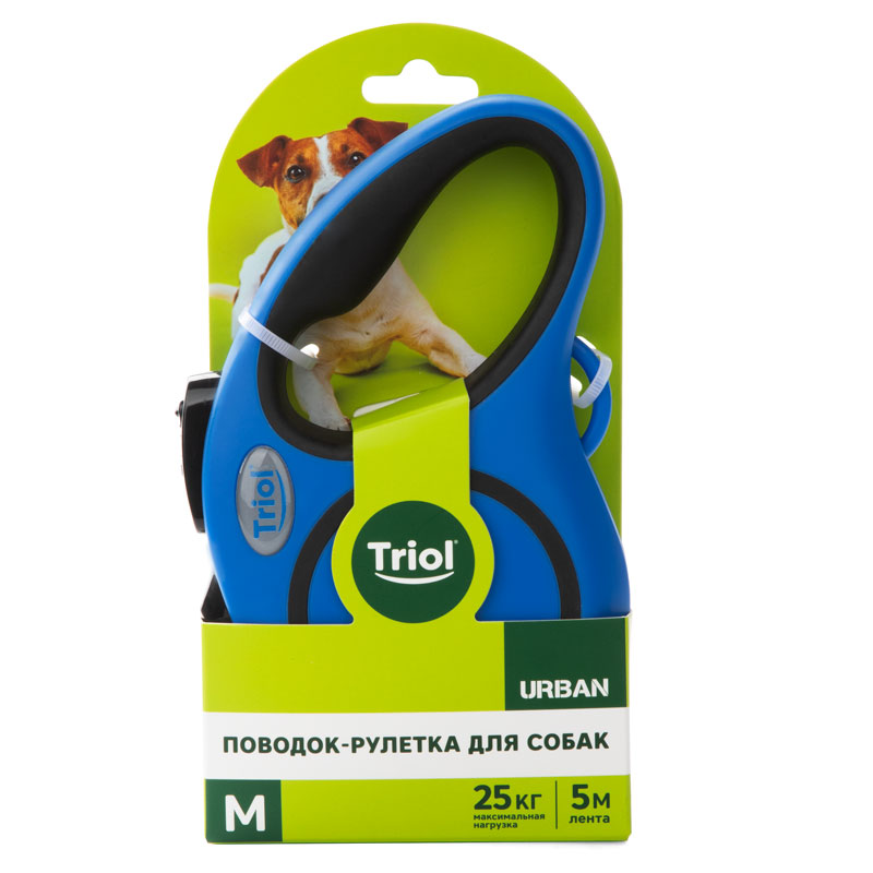 Поводок-рулетка для собак Urban M, 5м до 25кг, лента, синий, Triol
