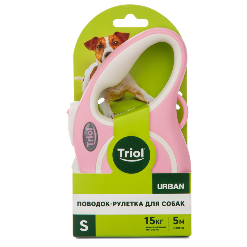 Поводок-рулетка для собак Urban S, 5м до 15кг, лента, розовый, Triol