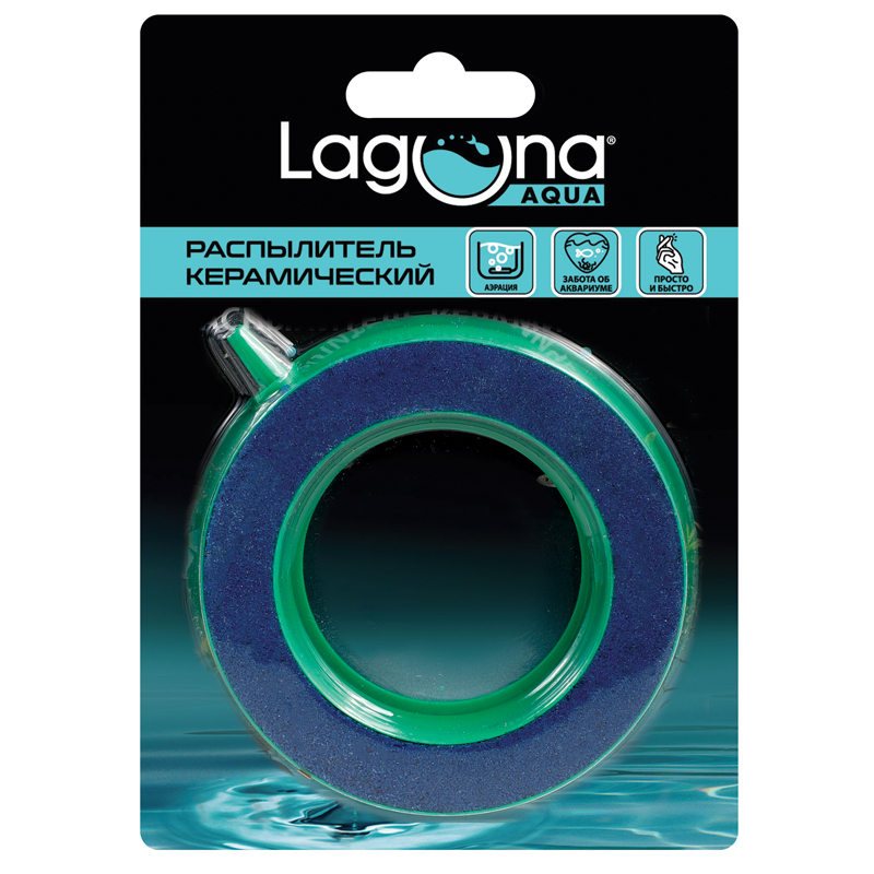 Распылитель предназначен для аэрации воды в аквариуме. Распылитель изготовлен из песка, смешанного с полиэфирной смолой, что обеспечивает ему мелкопористую структуру. При этом воздух, проходя через распылитель, дробится на большое количество воздушных пузырьков, которые активно насыщают кислородом аквариумную воду. Для подключения воздушного шланга у распылителя имеется выход диаметром 4мм. Для создания комфортной среды необходимо наличие компрессора достаточной мощности. Благодаря форме в виде круга можно создать эффектные подводные декорации.