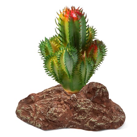 Растения - это не только завершающий штрих в оформлении, но и необходимый атрибут любого террариума. Они дают укрытие и тень, по ним животное может перемещаться, они придают трехмерность внутреннему пространству террариума. Пластиковое растение на подставке из полиэфирной смолы подходит для оформления пустынных, полупустынных и тропических террариумов. Неоспоримое преимущество искусственных растений в том, что им не нужен полив, в них не заводятся паразиты и грибки, их легко мыть и дезинфицировать, и прослужат они неизмеримо дольше, чем живые растения.
