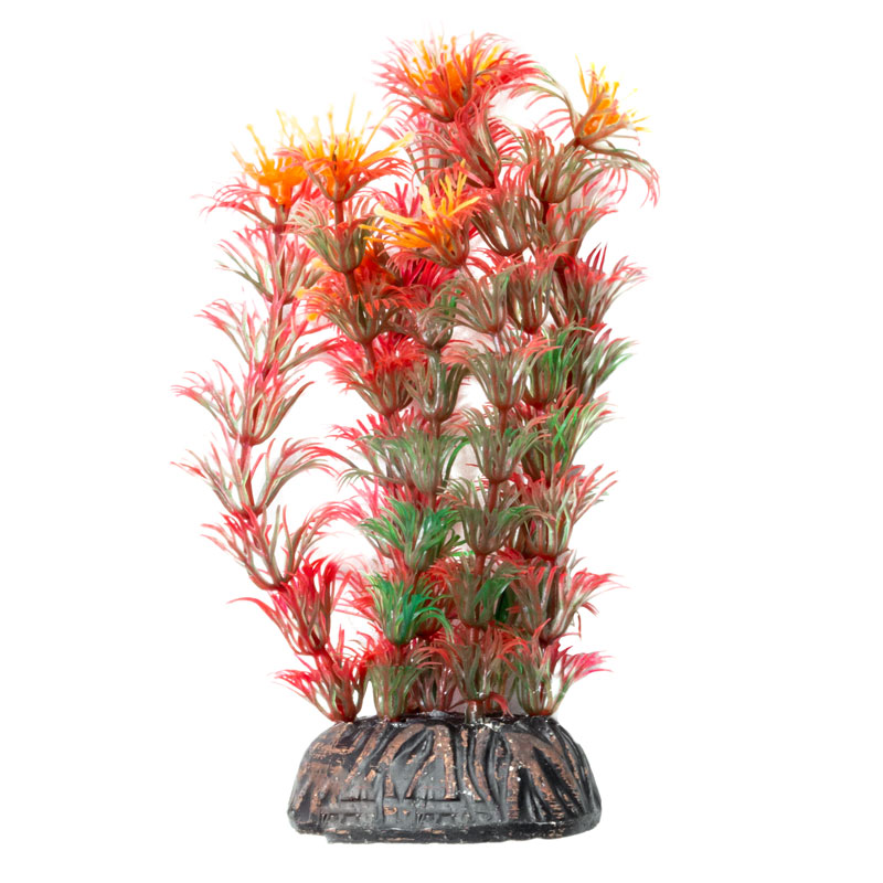 Растения - это не только завершающий штрих в оформлении, но и необходимый атрибут любого аквариума. Они придают трехмерность внутреннему пространству аквариума, а также служат дополнительным укрытием для небольших рыб, отвечая тем самым не только за эстетику, но и принося обитателям аквариума реальную пользу. Неоспоримое преимущество искусственных растений в том, что в них не заводятся паразиты и грибки, их легко мыть и дезинфицировать, и прослужат они неизмеримо дольше, чем живые растения. Изготовленное из нетоксичного пластика, растение для аквариума с тяжелой керамической подставкой "Людвигия крассно-зеленая" подойдет для оформления любых типов пресноводных аквариумов.