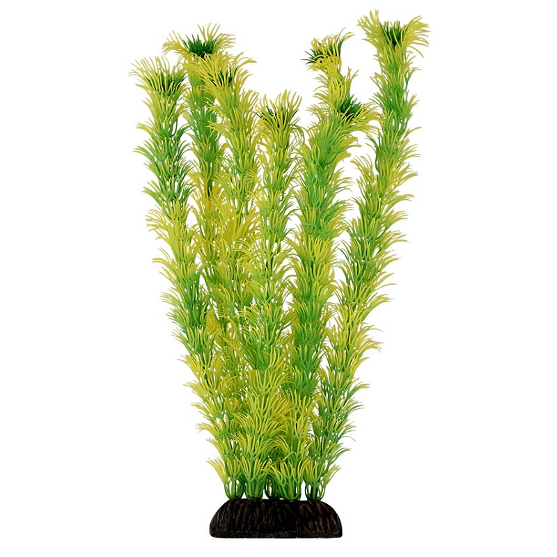 Растения - это не только завершающий штрих в оформлении, но и необходимый атрибут любого аквариума. Они придают трехмерность внутреннему пространству аквариума, а также служат дополнительным укрытием для небольших рыб, отвечая тем самым не только за эстетику, но и принося обитателям аквариума реальную пользу. Неоспоримое преимущество искусственных растений в том, что в них не заводятся паразиты и грибки, их легко мыть и дезинфицировать, и прослужат они неизмеримо дольше, чем живые растения. Изготовленное из нетоксичного пластика, растение для аквариума с тяжелой керамической подставкой "Людвигия ярко-желтая" подойдет для оформления любых типов пресноводных аквариумов.