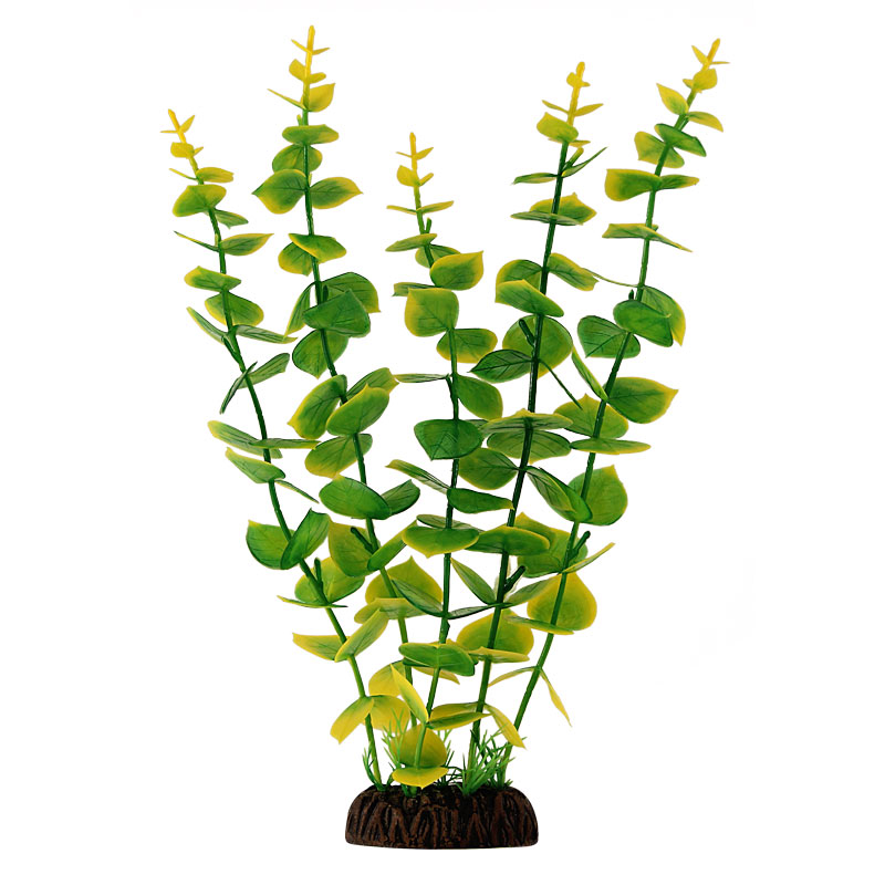Растения - это не только завершающий штрих в оформлении, но и необходимый атрибут любого аквариума. Они придают трехмерность внутреннему пространству аквариума, а также служат дополнительным укрытием для небольших рыб, отвечая тем самым не только за эстетику, но и принося обитателям аквариума реальную пользу. Неоспоримое преимущество искусственных растений в том, что в них не заводятся паразиты и грибки, их легко мыть и дезинфицировать, и прослужат они неизмеримо дольше, чем живые растения. Изготовленное из нетоксичного пластика, растение для аквариума с тяжелой керамической подставкой "Людвигия ярко-желтая" подойдет для оформления любых типов пресноводных аквариумов.