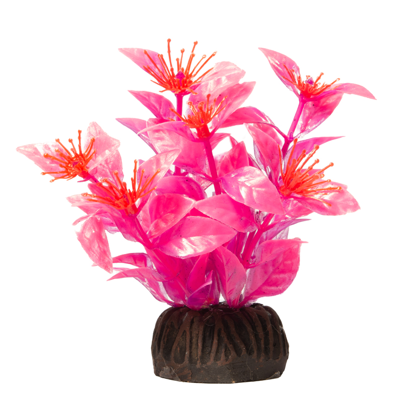 Растения - это не только завершающий штрих в оформлении, но и необходимый атрибут любого аквариума. Они придают трехмерность внутреннему пространству аквариума, а также служат дополнительным укрытием для небольших рыб, отвечая тем самым не только за эстетику, но и принося обитателям аквариума реальную пользу. Неоспоримое преимущество искусственных растений в том, что в них не заводятся паразиты и грибки, их легко мыть и дезинфицировать, и прослужат они неизмеримо дольше, чем живые растения. Изготовленное из нетоксичного пластика, растение для аквариума с тяжелой керамической подставкой "Людвигия ярко-розовая" подойдет для оформления любых типов пресноводных аквариумов.