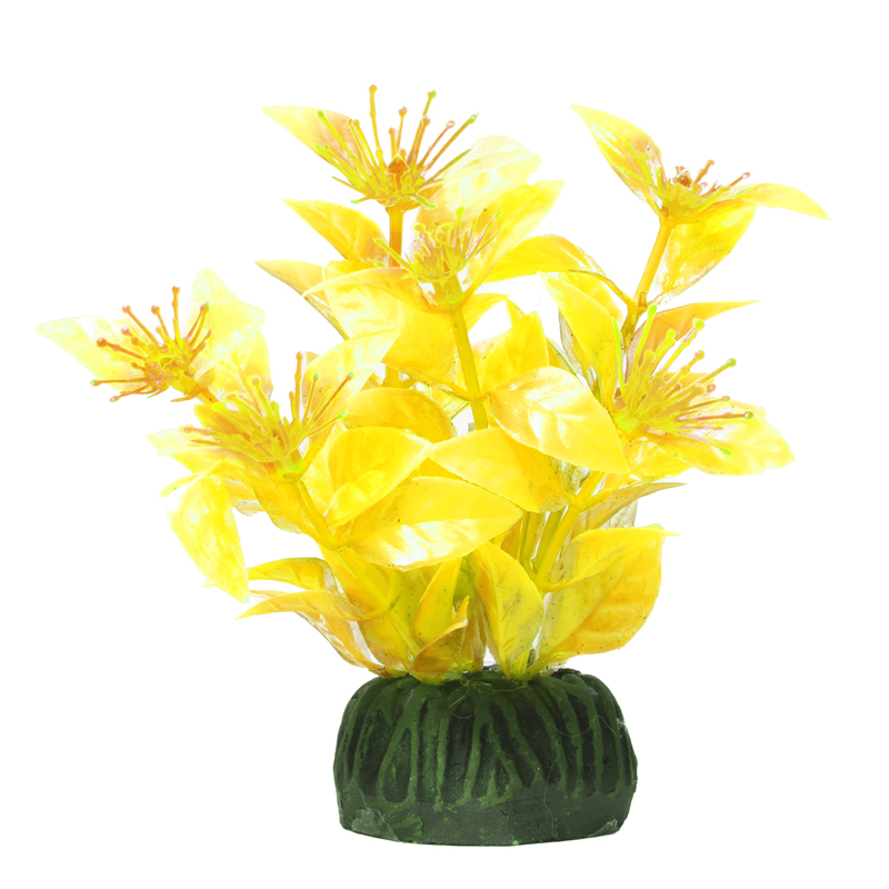 Растения - это не только завершающий штрих в оформлении, но и необходимый атрибут любого аквариума. Они придают трехмерность внутреннему пространству аквариума, а также служат дополнительным укрытием для небольших рыб, отвечая тем самым не только за эстетику, но и принося обитателям аквариума реальную пользу. Неоспоримое преимущество искусственных растений в том, что в них не заводятся паразиты и грибки, их легко мыть и дезинфицировать, и прослужат они неизмеримо дольше, чем живые растения. Изготовленное из нетоксичного пластика, растение для аквариума с тяжелой керамической подставкой "Людвигия ярко-желтая" подойдет для оформления любых типов пресноводных аквариумов.