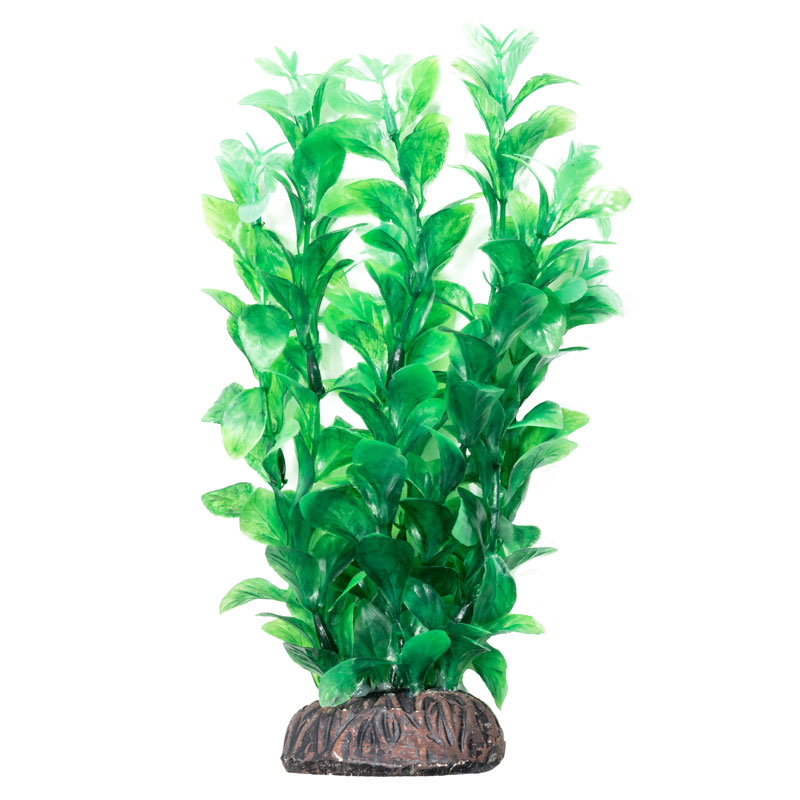 Растения - это не только завершающий штрих в оформлении, но и необходимый атрибут любого аквариума. Они придают трехмерность внутреннему пространству аквариума, а также служат дополнительным укрытием для небольших рыб, отвечая тем самым не только за эстетику, но и принося обитателям аквариума реальную пользу. Неоспоримое преимущество искусственных растений в том, что в них не заводятся паразиты и грибки, их легко мыть и дезинфицировать, и прослужат они неизмеримо дольше, чем живые растения. Изготовленное из нетоксичного пластика, растение для аквариума с тяжелой керамической подставкой "Людвигия крассно-зеленая" подойдет для оформления любых типов пресноводных аквариумов.