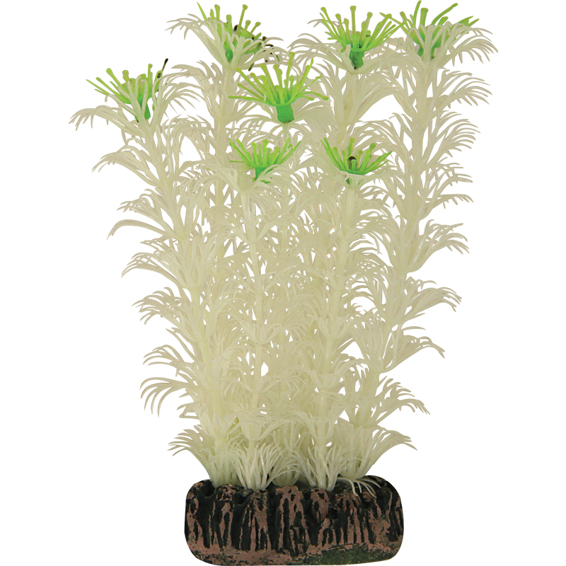 Растения - это не только завершающий штрих в оформлении, но и необходимый атрибут любого аквариума. Они придают трехмерность внутреннему пространству аквариума, а также служат дополнительным укрытием для небольших рыб, отвечая тем самым не только за эстетику, но и принося обитателям аквариума реальную пользу. Неоспоримое преимущество искусственных растений в том, что в них не заводятся паразиты и грибки, их легко мыть и дезинфицировать, и прослужат они неизмеримо дольше, чем живые растения. Изготовленное из нетоксичного пластика, светящееся растение для аквариума с тяжелой керамической подставкой подойдет для оформления любых типов пресноводных аквариумов. В состав пластика входит люминофор, который в течение светового дня накапливает энергию, а в темноте начинает ее отдавать, в результате чего от растений исходит фосфоресцирующее сияние.