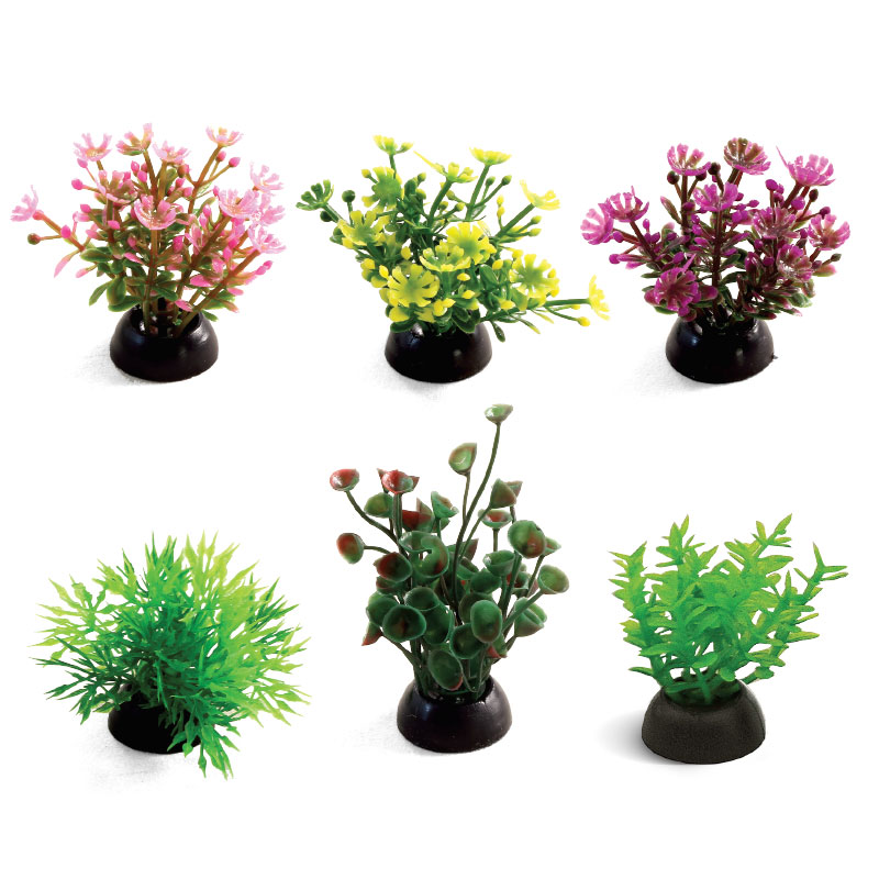 Растения - это не только завершающий штрих в оформлении, но и необходимый атрибут любого аквариума. Они придают трехмерность внутреннему пространству аквариума, а также служат дополнительным укрытием для небольших рыб, отвечая тем самым не только за эстетику, но и принося обитателям аквариума реальную пользу. Неоспоримое преимущество искусственных растений в том, что в них не заводятся паразиты и грибки, их легко мыть и дезинфицировать, и прослужат они неизмеримо дольше, чем живые растения. Изготовленные из нетоксичного пластика, композиции из растений подойдут для оформления переднего плана любых типов пресноводных аквариумов.