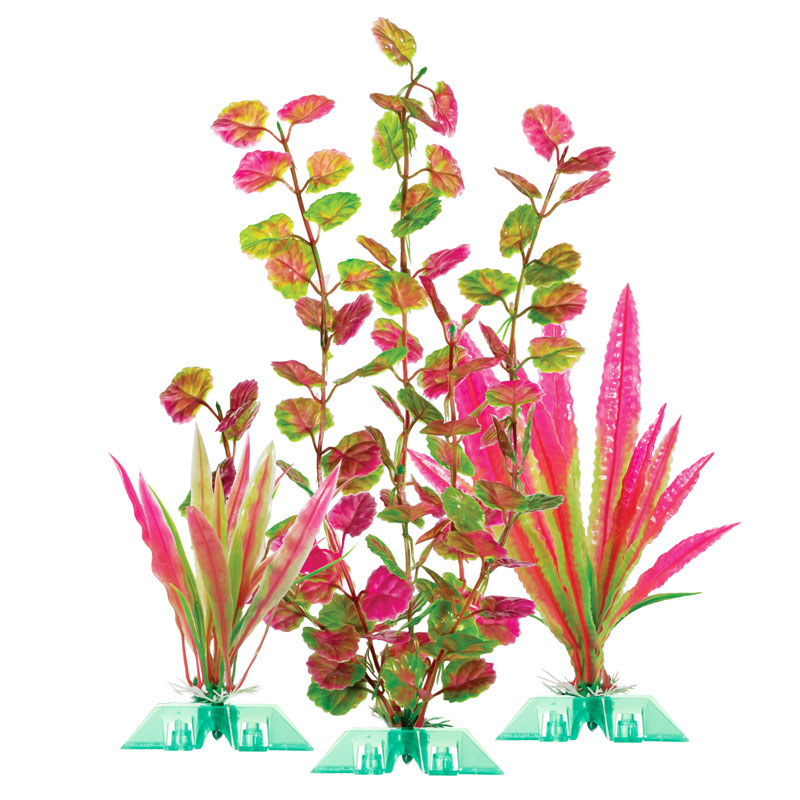 Растения - это не только завершающий штрих в оформлении, но и необходимый атрибут любого аквариума. Они придают трехмерность внутреннему пространству аквариума, а также служат дополнительным укрытием для небольших рыб, отвечая тем самым не только за эстетику, но и принося обитателям аквариума реальную пользу. Неоспоримое преимущество искусственных растений в том, что в них не заводятся паразиты и грибки, их легко мыть и дезинфицировать, и прослужат они неизмеримо дольше, чем живые растения. Изготовленное из нетоксичного пластика, набор растений для аквариума подойдет для оформления любых типов пресноводных аквариумов.