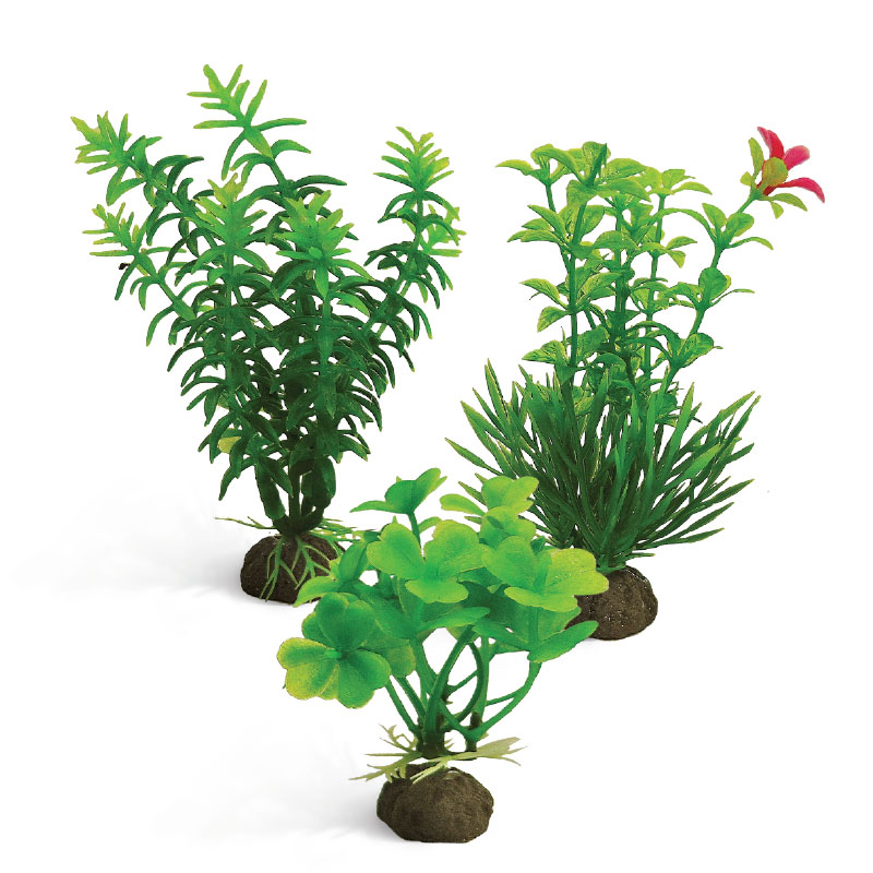 Растения - это не только завершающий штрих в оформлении, но и необходимый атрибут любого аквариума. Они придают трехмерность внутреннему пространству аквариума, а также служат дополнительным укрытием для небольших рыб, отвечая тем самым не только за эстетику, но и принося обитателям аквариума реальную пользу. Неоспоримое преимущество искусственных растений в том, что в них не заводятся паразиты и грибки, их легко мыть и дезинфицировать, и прослужат они неизмеримо дольше, чем живые растения. Изготовленные из нетоксичного пластика, композиции из растений подойдут для оформления переднего плана любых типов пресноводных аквариумов.