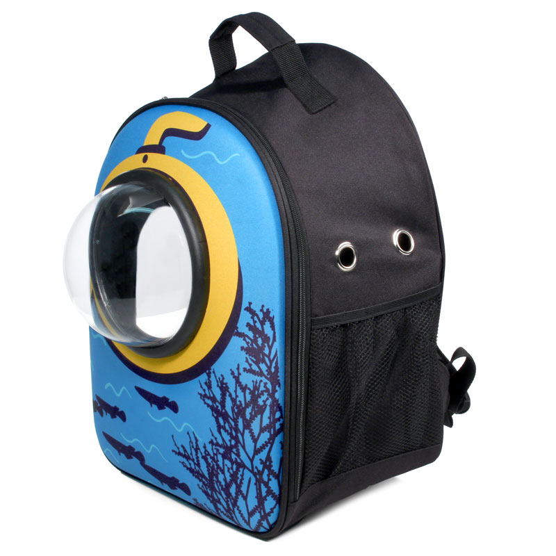 Этот оригинальный рюкзак с принтом "Батискаф" - не только отличный аксессуар для транспортировки кошек и собак небольших пород, но и по-настоящему стильный атрибут. Надежный и практичный, за счет жесткого каркаса и просторных габаритов он отлично справляется со своей задачей, а вентиляционная сетка и специальные отверстия гарантируют постоянную циркуляцию воздуха. А креативный дизайн с объемным иллюминатором позволит вашему питомцу с интересом наблюдать за происходящим вокруг. Максимальный вес животного: 7кг. Цвет: синий. Размер: 450х320х230мм.
