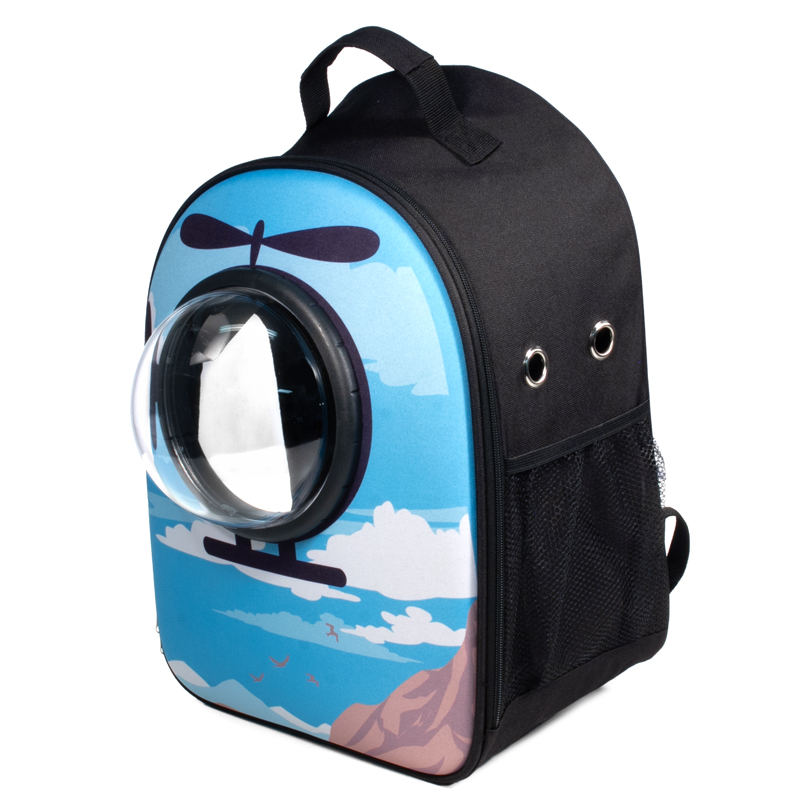 Этот оригинальный рюкзак с принтом "Вертолет" - не только отличный аксессуар для транспортировки кошек и собак небольших пород, но и по-настоящему стильный атрибут. Надежный и практичный, за счет жесткого каркаса и просторных габаритов он отлично справляется со своей задачей, а вентиляционная сетка и специальные отверстия гарантируют постоянную циркуляцию воздуха. А креативный дизайн с объемным иллюминатором позволит вашему питомцу с интересом наблюдать за происходящим вокруг. Максимальный вес животного: 7кг. Цвет: голубой. Размер: 450х320х230мм.