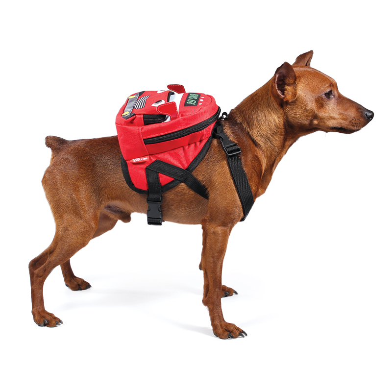 Оригинальный рюкзак-шлейка для собак небольших пород - креативный аксессуар, который станет отличным дополнением яркого образа вашего питомца. Помимо эксклюзивного дизайна изделие наделено и полезной прикладной функцией. Два кармана на молнии позволят взять с собой важные мелочи, регулируемые по длине лямки сделают посадку рюкзака максимально удобной для питомца, мягкая сетчатая вставка обеспечит вентиляцию и не допустит натирания, а прочное металлическое кольцо позволит пристегнуть к шлейке любой поводок. Цвет: красный. Обхват груди: 450-550мм. Размер рюкзачка: 170*150*90мм.