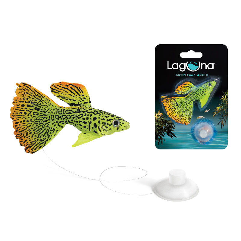 Рыбка декоративная силиконовая "Гуппи", 97*140*25мм, (блистер), Laguna