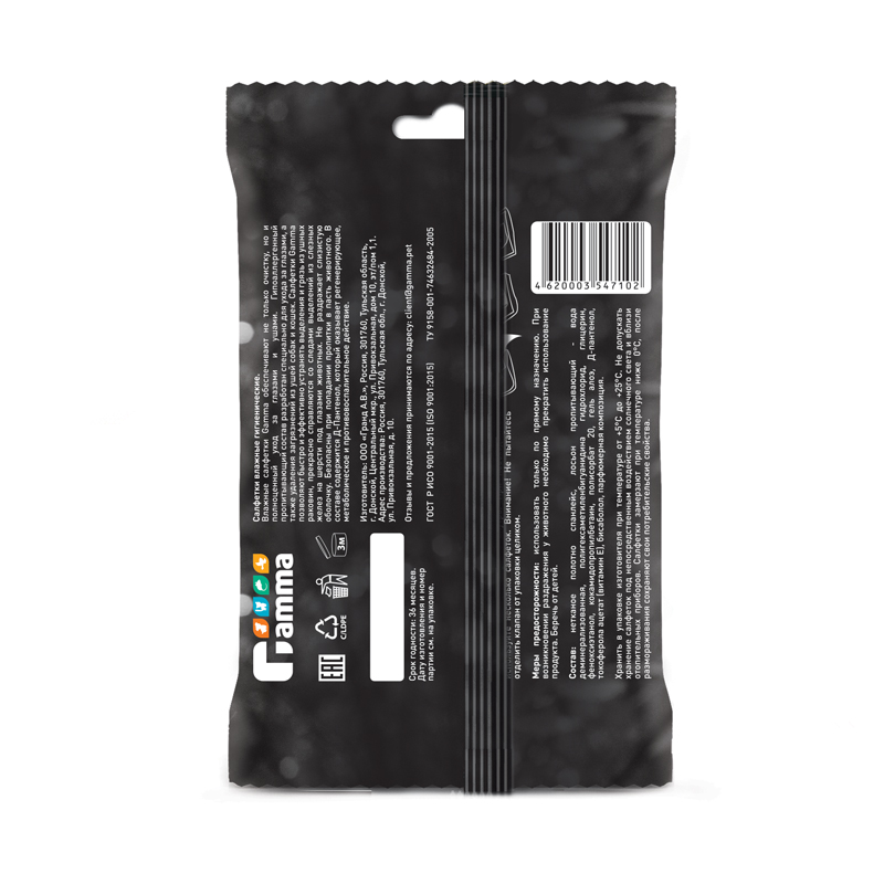 Салфетки влажные "Уход за лапами", 150*160мм, Gamma