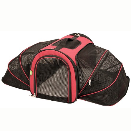 Сумка-переноска многофункциональная. Раскладывающиеся вниз, боковые отделения обеспечивают дополнительное пространство. Легкий и износостойкий материал, отлично сохраняет форму изделия. Боковой карман для хранения сопутствующих предметов. Изделие укомплектовано подушкой из флиса. Верхняя и боковая сетки обеспечивают хорошую вентиляцию. Складывается в удобную сумку, не занимает много места при хранении. Цвет: красный с черным. Размер: 500*260*320мм; 500*580*320мм (в разложенном виде). Максимальная нагрузка: 13 кг.