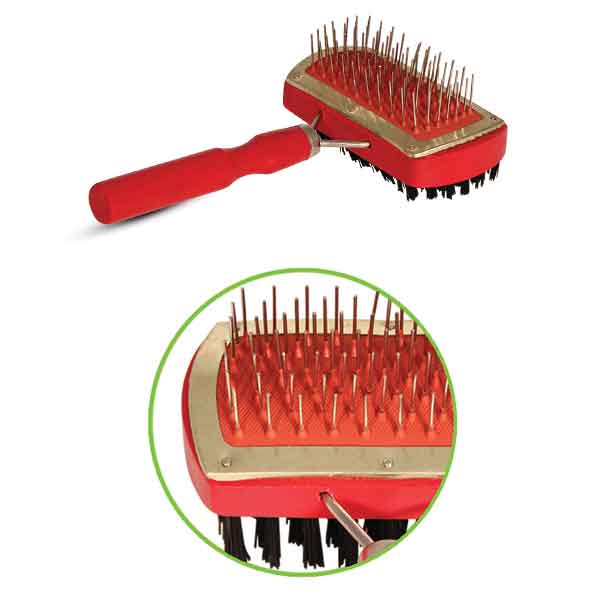 Удобная двустороняя щетка прямоугольной формы с деревянной ручкой обеспечивает нежный уход за верхним и базовым слоем шерсти животного. Нейлоновая щетина с одной стороны и металлическая с наконечниками с другой идеально подходят для питомцев с любым типом шерсти. Размер изделия: 180х55х60мм. Упаковка: блистер.