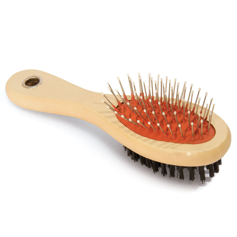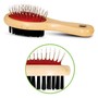 Удобная двустороняя щетка прямоугольной формы с деревянной ручкой обеспечивает нежный уход за верхним и базовым слоем шерсти животного. Нейлоновая щетина с одной стороны и металлическая с наконечниками с другой идеально подходят для питомцев с любым типом шерсти. Размер изделия: 170х65х45мм. Упаковка: блистер.