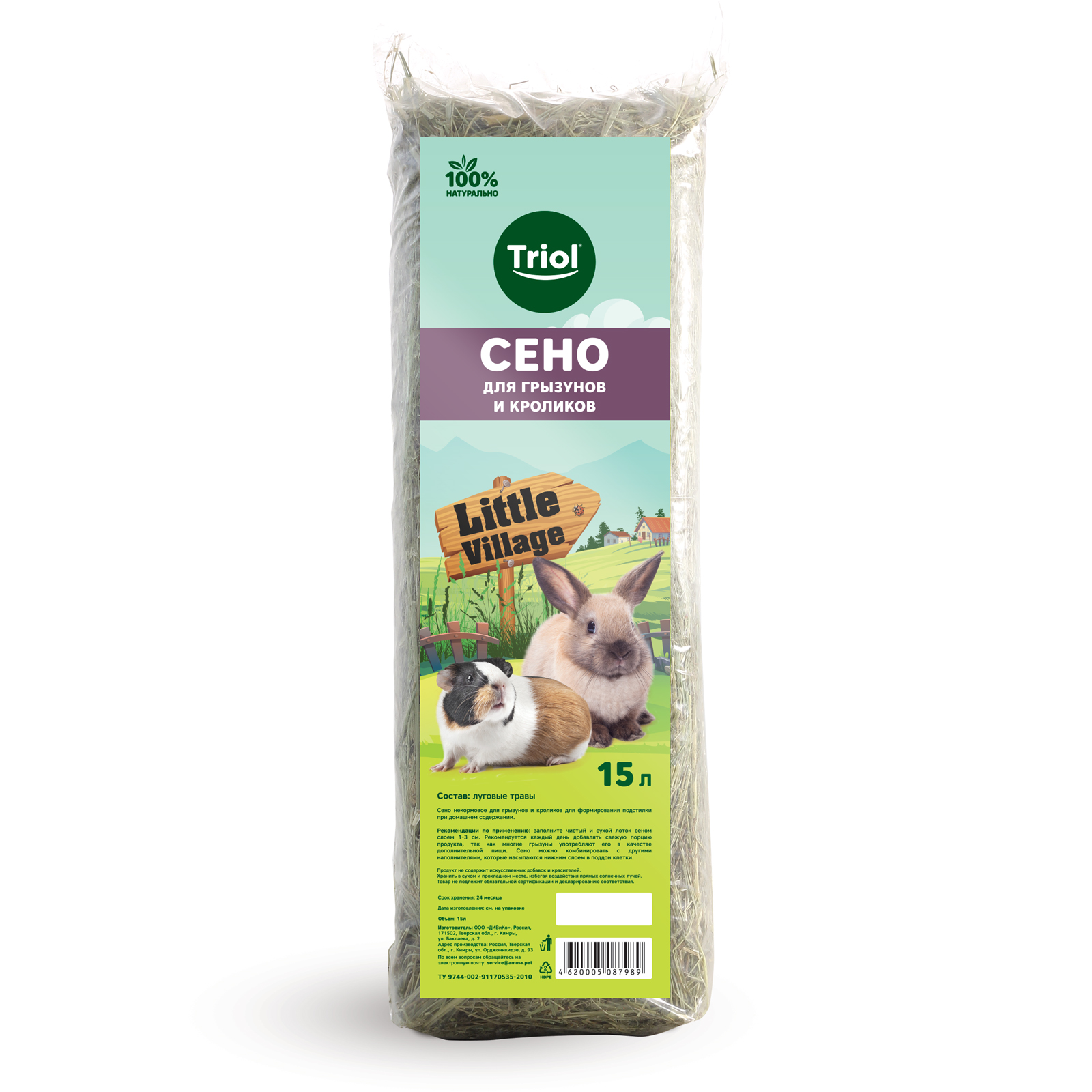 Сено луговое для грызунов и кроликов, 15л, серия LITTLE VILLAGE, Triol