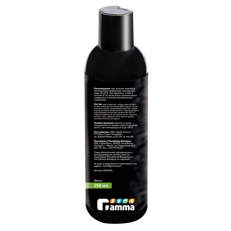 Шампунь для гладкошерстных кошек (объем 250 мл) - это универсальное средство для гигиены животного, разработанное из гипоаллергенных средств, мягко очищающих шерсть и кожу питомца от грязи и пыли и надежно защищая кожный покров от раздражения, зуда и красноты. Кроме того, специальные кондиционирующие средства и натуральный воск улучшают качество шерсти и сохраняют здоровье волосяных фолликул. Шампунь Gamma также ускоряет процесс сезонной линьки, способствуя быстрому выпадению старой шерсти и сохранению новых волосков.