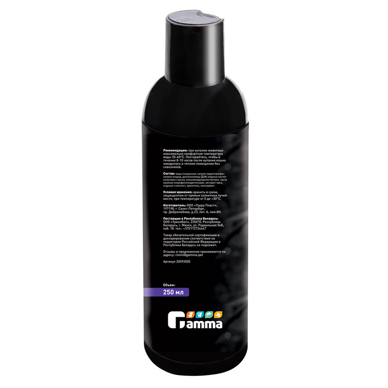 Шампунь для кошек и котят "Гамма" прекрасно очищает шерсть любого типа, кондиционируя ее и придавая ей здоровый блеск. Провитаминный комплекс улучшает структуру и внешний вид шерсти. Сбалансированный состав активизирует защитные свойства кожи, предохраняя ее от пересыхания и регенерируя поврежденные участки. Шампунь легко смывается, оставляя на шерсти питомца легкий аромат свежести и выпускается объемом 250 мл.