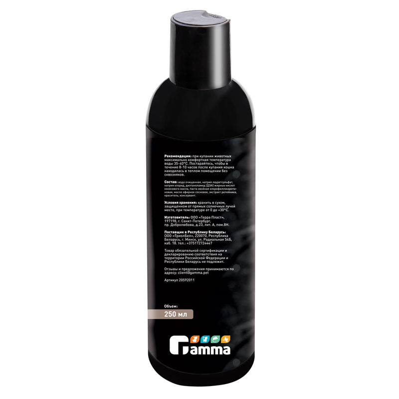 Шампунь для кошек и котят "Гамма" прекрасно очищает шерсть любого типа, кондиционируя ее и придавая ей здоровый блеск. Провитаминный комплекс улучшает структуру и внешний вид шерсти. Сбалансированный состав активизирует защитные свойства кожи, предохраняя ее от пересыхания и регенерируя поврежденные участки. Шампунь легко смывается, оставляя на шерсти питомца легкий аромат свежести и выпускается объемом 250 мл.