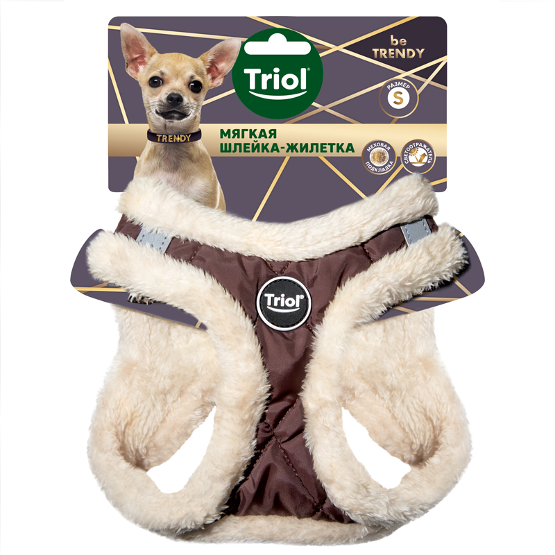 Шлейка-жилетка мягкая коричневая S, обхват груди 360-440мм, серия BE TRENDY, Triol