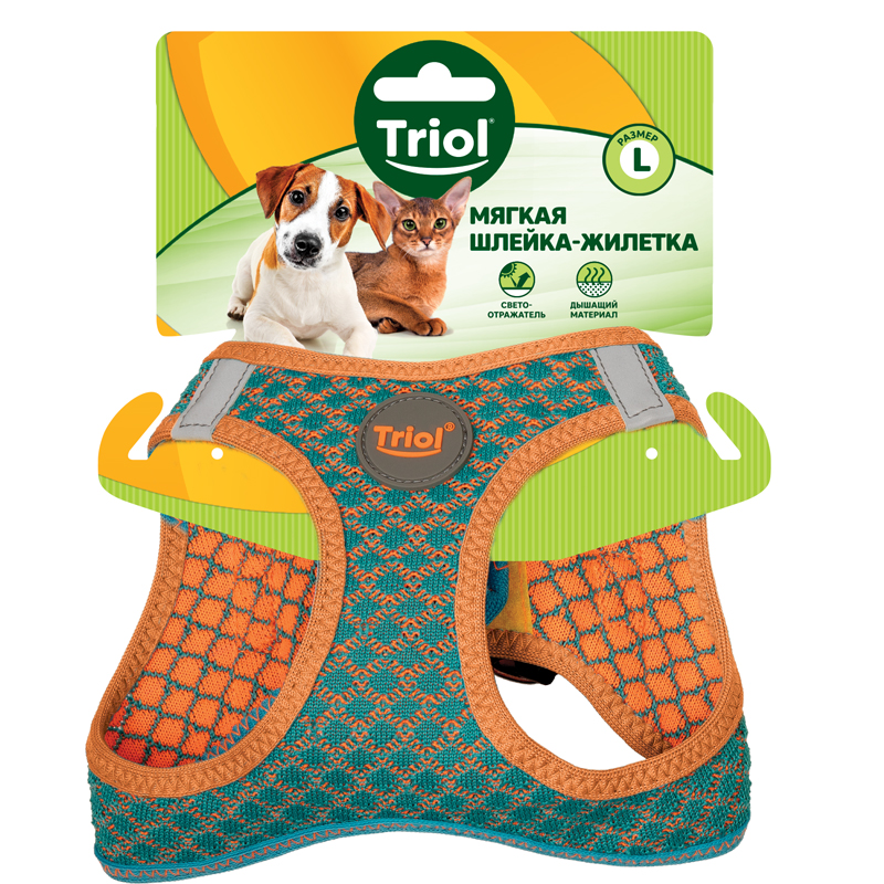 Шлейка-жилетка мягкая нейлоновая бирюзовая L, обхват груди 470-500мм, Triol