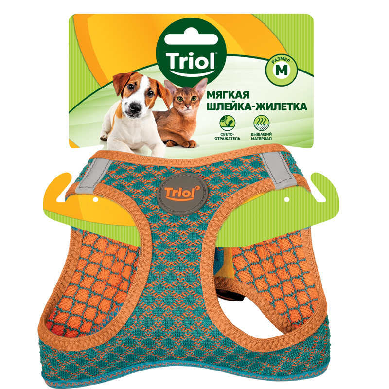 Шлейка-жилетка мягкая нейлоновая бирюзовая M, обхват груди 410-440мм, Triol