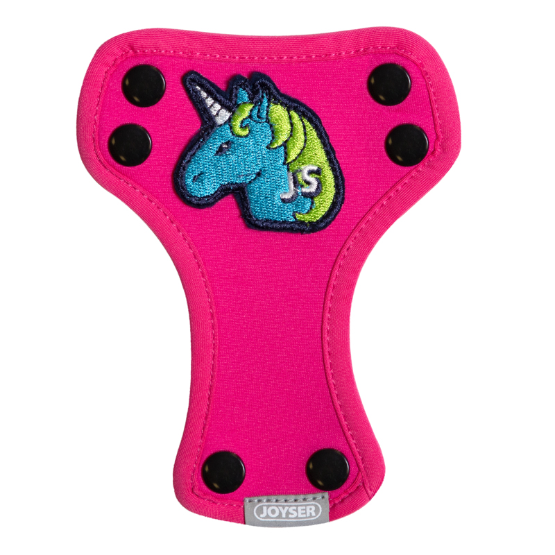 Два шеврона на кнопках JOYSER Patches (с вышивкой "единорог" и "молния") для сменного передника шлейки для собак JOYSER Mood Harness Customized-Shirt. Цвет: синий/розовый.