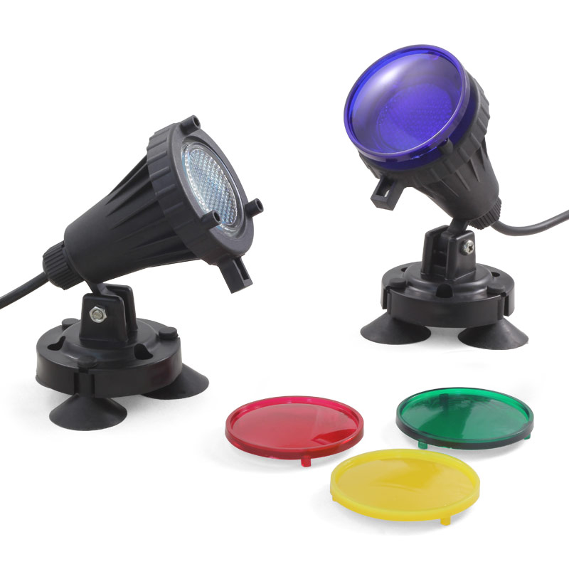 Подводная подсветка для декорирования прудов и бассейнов. В комплекте - две лампы белого цвета и сменные светофильтры: синий, зеленый, желтый и красный.