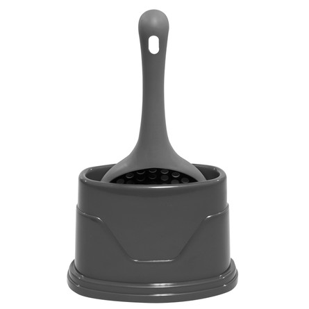 Универсальный совок для кошачьих туалетов с круглыми ячейками и подставкой подойдет для всех типов наполнителей. Изделие не впитывает запахи и легко чистится под водой при помощи моющих средств. Совок укомплектован напольной подставкой, которая не занимает много места. Цвет изделия: темно-серый. Размер совка: 262*112*43мм. Размер подставки: 170*115*95мм.