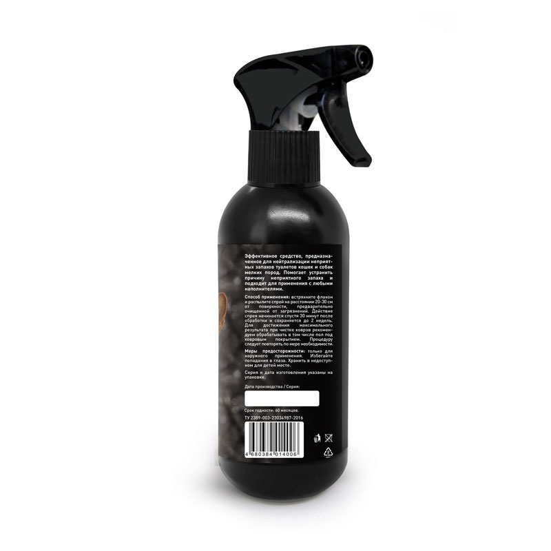Спрей зоогигиенический предназначен для отучения собак и кошек справлять нужду в непредназначенном для этого месте. Бесцветная прозрачная жидкость с запахом спирта и применяемой отдушки во флаконе с триггером.