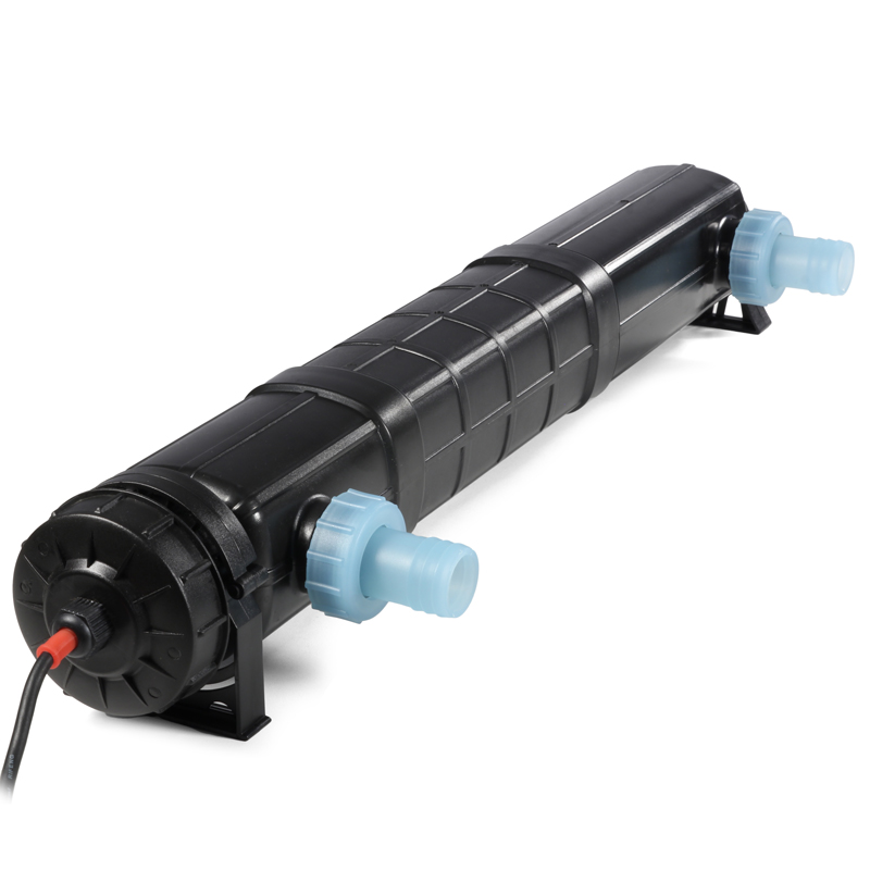 Проточный ультрафиолетовый стерилизатор для аквариума или системы аквариумов объемом до 2000л. В комплекте: ультрафиолетовая лампа в тубе из кварцевого стекла, корпус для защиты лампы и тубы, две втулки для подключения шлангов на вход и выход аквариумной воды. Предназначен для обеззараживания (кварцевания) аквариумной воды и очищения ее от вредных и болезнетворных бактерий, а также от микрогрибков и простейших организмов и водорослей.