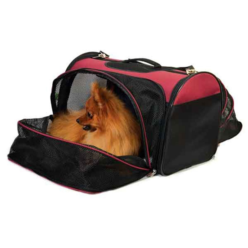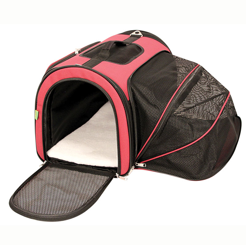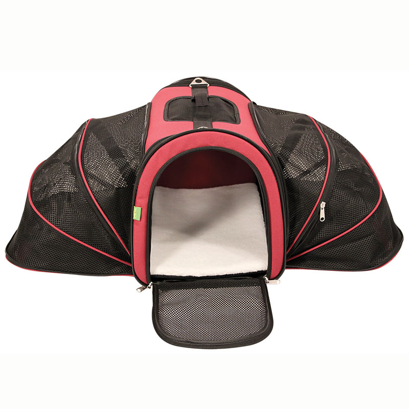 Сумка-переноска многофункциональная. Раскладывающиеся вниз, боковые отделения обеспечивают дополнительное пространство. Легкий и износостойкий материал, отлично сохраняет форму изделия. Боковой карман для хранения сопутствующих предметов. Изделие укомплектовано подушкой из флиса. Верхняя и боковая сетки обеспечивают хорошую вентиляцию. Складывается в удобную сумку, не занимает много места при хранении. Цвет: красный с черным. Размер: 500*260*320мм; 500*580*320мм (в разложенном виде). Максимальная нагрузка: 13 кг.