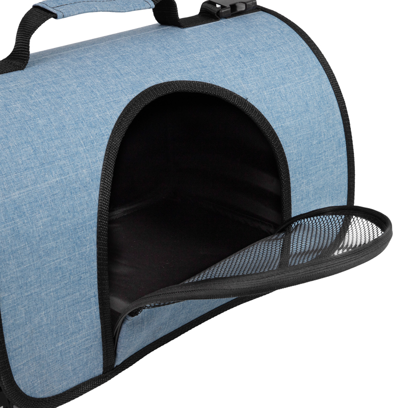 Эта современная переноска из джинсовой ткани - незаменимый аксессуар для транспортировки кошек и собак небольших пород. Надежная и практичная, за счет жесткого основания она удобно становится на пассажирское сиденье в автомобиле, стильно смотрится в руке и отлично справляется со своей задачей. Изделие подходит для комфортной и безопасной перевозки животных, имеет несколько карманов для дополнительных аксессуаров, а торцевые стенки на молнии открываются легким движением. Цвет: синий. Размер: 435х270х250мм. Максимальная нагрузка: 7 кг.