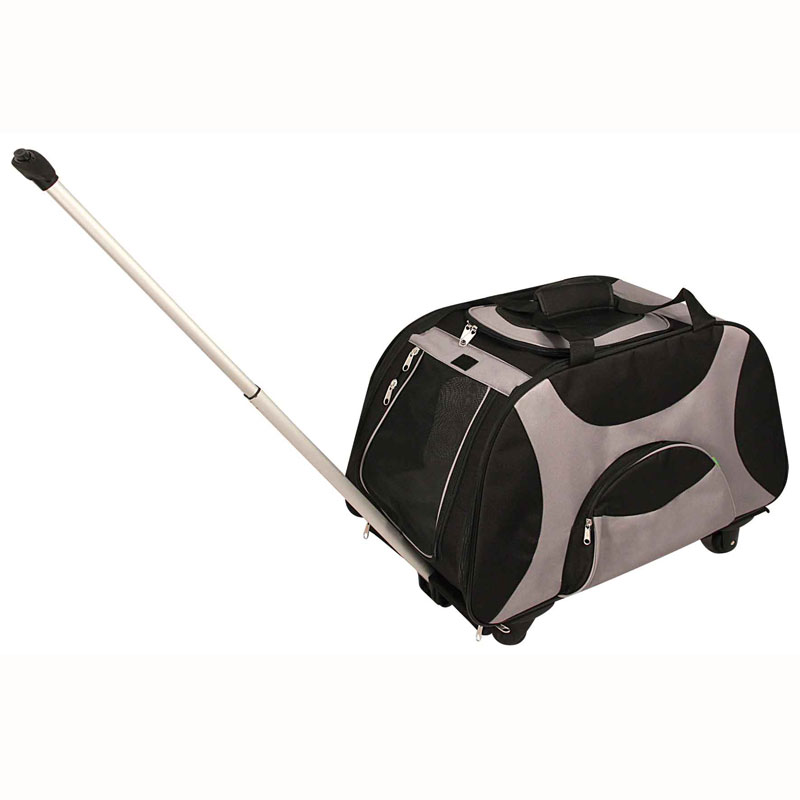 Многофункциональная сумка-переноска на колесах имеет выдвижную телескопическую ручку. Дно сумки крепится к корпусу при помощи липучек и при необходимости легко отстегивается. Доступ внутрь изделия обеспечивается с фронтальной зоны и сверху. Поводок-фиксатор оптимальной длины не позволит вашему питомцу выпрыгнуть из переноски, мягкая подушка внутри - отвечает за комфорт питомца, а сетчатые вставки обеспечивают хорошую циркуляцию воздуха. Сумка также имеет удобное отделение для хранения сопутствующих предметов, а благодаря специальному ремню ее удобно носить на плече.