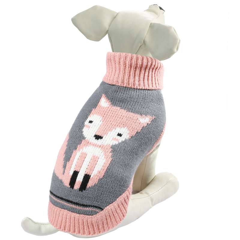 Теплый и оригинальный свитер с изображением лисички - это удобный и функциональный аксессуар для собак, который просто незаменим в холодную погоду. Изделие защитит вашего питомца от ветра и согреет в непогоду. Свитер имеет стильный дизайн, а универсальный фасон не стесняет движений питомца во время прогулки. Вывязанная резинка по всему периметру низа изделия обеспечивает плотное прилегание свитера к телу. Такой свитер с модным принтом станет украшением гардероба вашего питомца. Материал: акрил. Цвет:розово-серый. Размер: 40см (XL).