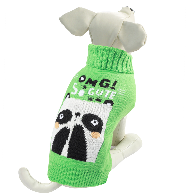 Теплый и оригинальный свитер с изображением панды - это удобный и функциональный аксессуар для собак, который просто незаменим в холодную погоду. Изделие защитит вашего питомца от ветра и согреет в непогоду. Свитер имеет стильный дизайн, а универсальный фасон не стесняет движений питомца во время прогулки. Такой свитер с модным принтом станет украшением гардероба вашего питомца. Материал: акрил. Цвет: зеленый с бело-черным. Размер: 35см (L).
