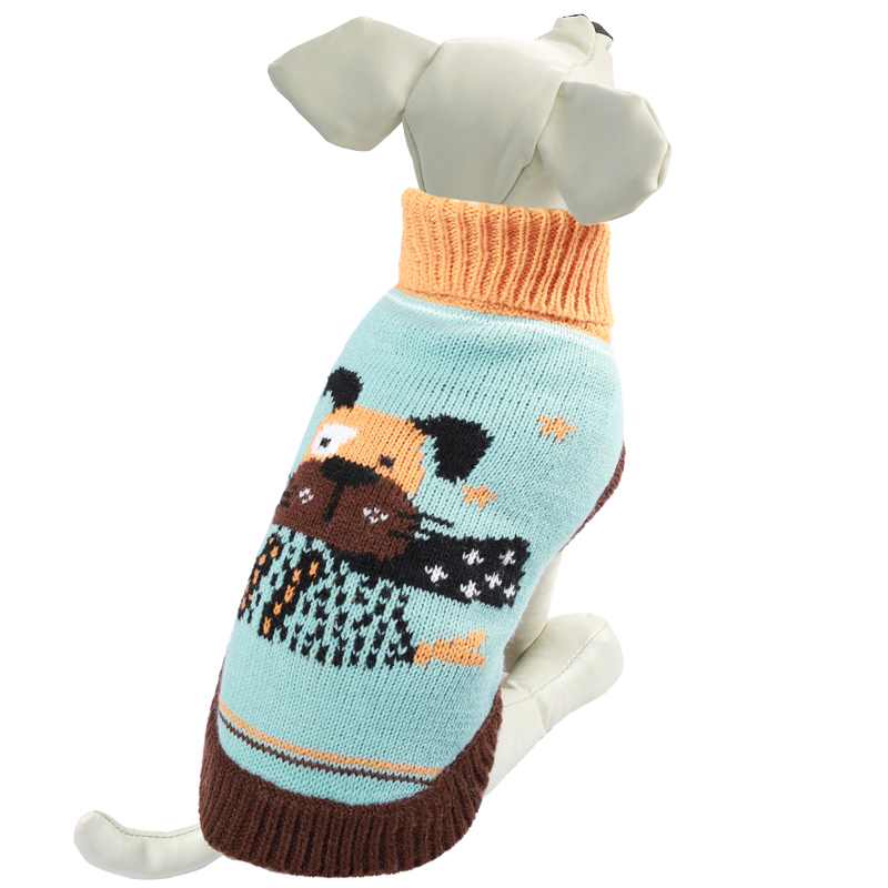 Теплый и оригинальный свитер с изображением собачки - это удобный и функциональный аксессуар для собак, который просто незаменим в холодную погоду. Изделие защитит вашего питомца от ветра и согреет в непогоду. Свитер имеет стильный дизайн, а универсальный фасон не стесняет движений питомца во время прогулки. Вывязанная резинка по всему периметру низа изделия обеспечивает плотное прилегание свитера к телу. Такой свитер с модным принтом станет украшением гардероба вашего питомца. Материал: акрил. Цвет: голубой с оранжево-коричневым. Размер: 30см (M).