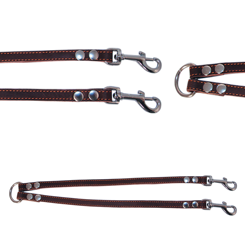 Прочная и надежная двойная сворка без ручки из качественных кожаных полос. Сворку для двух собак удобно использовать на конкурсах и выставках, а также для вывода животных в людное место на прогулку. Варианты расцветок: бежевый, коньяк, коричневый, черный. Размер изделия: 14х500мм.