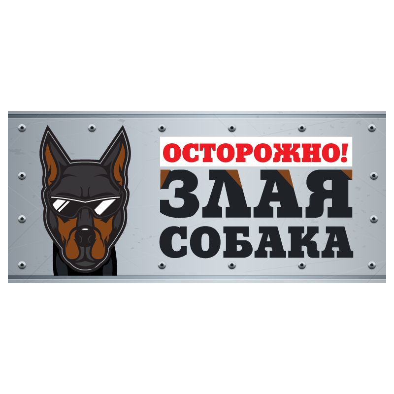 Табличка "Злая собака" анимация, доберман, 250*114мм