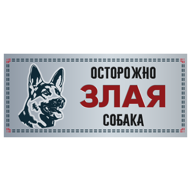 Табличка "Злая собака" силуэт, немецкая овчарка, 250*114мм