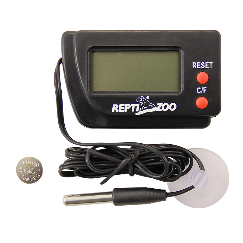 При содержании террариумных животных необходимо постоянно мониторить климатические условия в террариуме. Для отслеживания температуры воздуха применяется термометр. При использовании электронного термометра SH105 не обязательно помещать его внутрь террариума, где на него может воздействовать излишне влажная или теплая среда, достаточно только поместить щуп термометра в террариум. Диапазон измерения от 20 до 40 градусов С°. Термометр работает от батарейки (входит в комплект), показания температуры выводятся на жидкокристаллический дисплей.