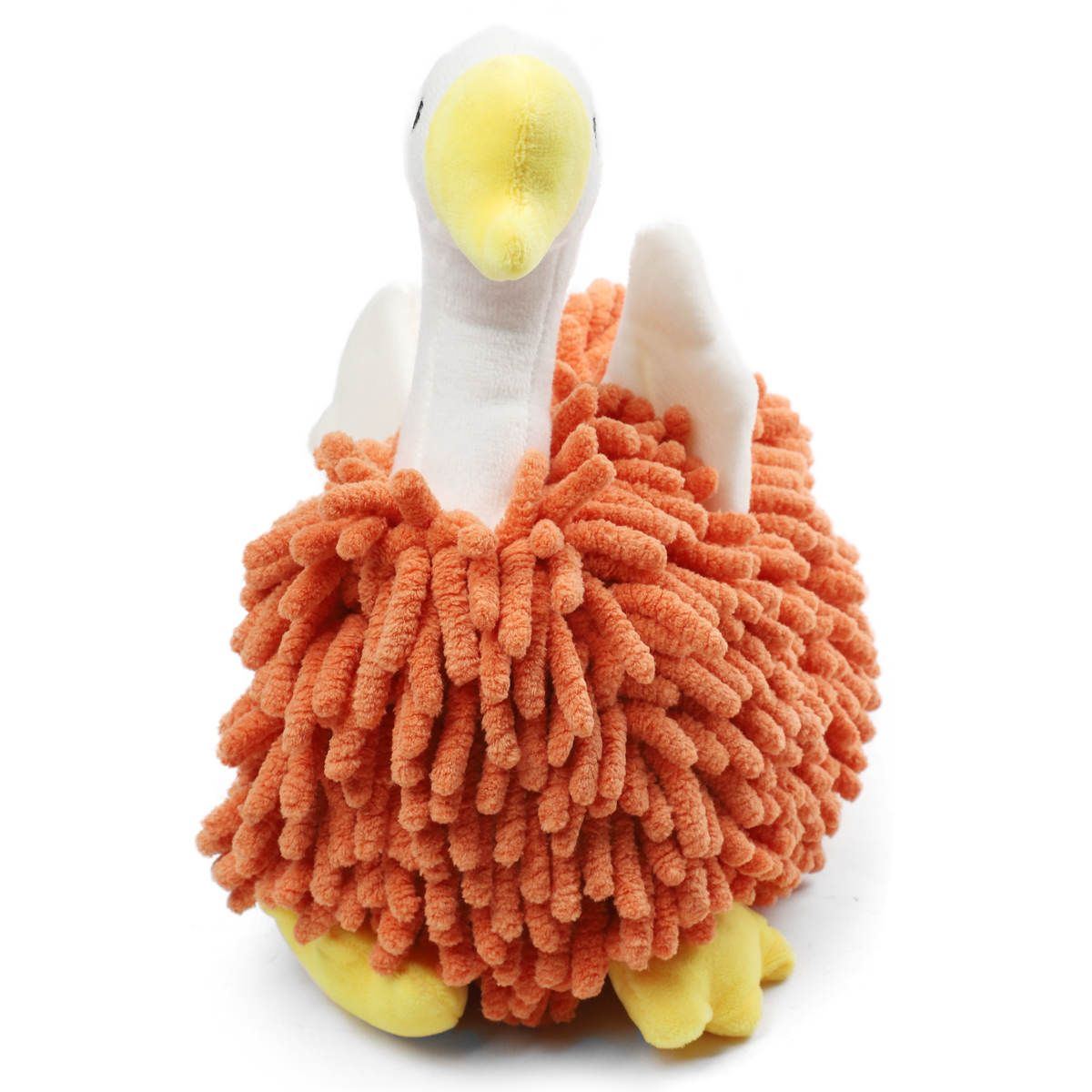 Забавная игрушка "Лохматый гусь" обязательно понравится вашему питомцу. Игрушка изготовлена из материала с длинным толстым ворсом, который обожают трепать собаки, и оснащена пищалкой для дополнительного привлечения внимания. Цвет изделия: оранжевый с белым. Размер изделия: 220*200*110мм.