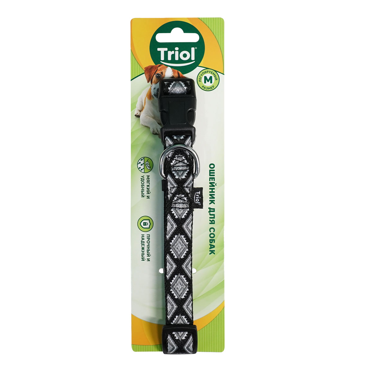 Triol Ошейник нейлоновый "Ромбы" M, черный, 20*340-490мм