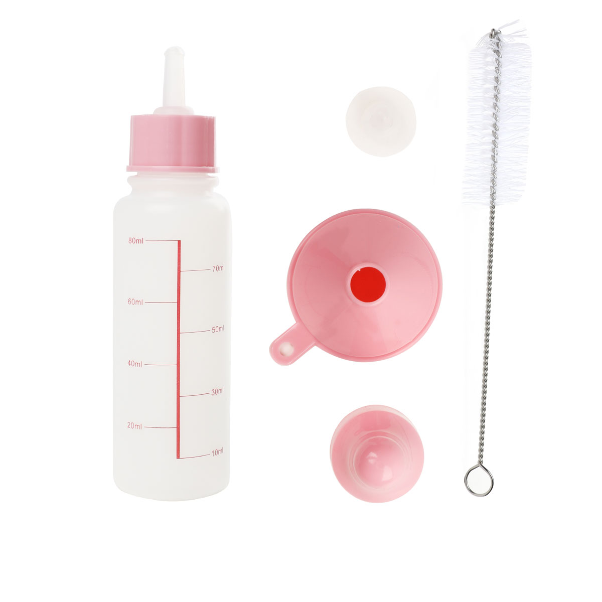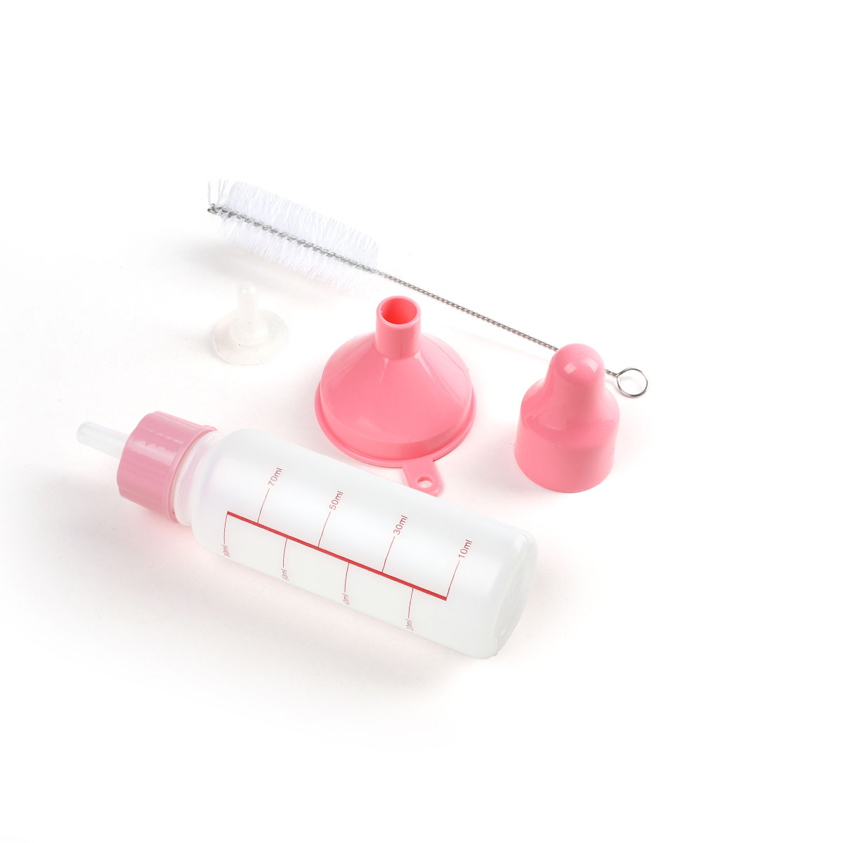 Бутылочка для щенков и котят предназначена для искусственного вскармливания новорожденных и подрастающих животных. В комплект входят: мерная бутылочка объёмом 90 мл, ёршик для очистки, воронка, крышка и 2 соски. Соски изготовлены из мягкого силикона, который имитирует сосок матери и безопасен для маленьких питомцев. Бутылочки можно использовать для молочной смеси, воды или жидкого корма, а также их удобно брать с собой в путешествие. Цвет: белый. Объём: 90мл.